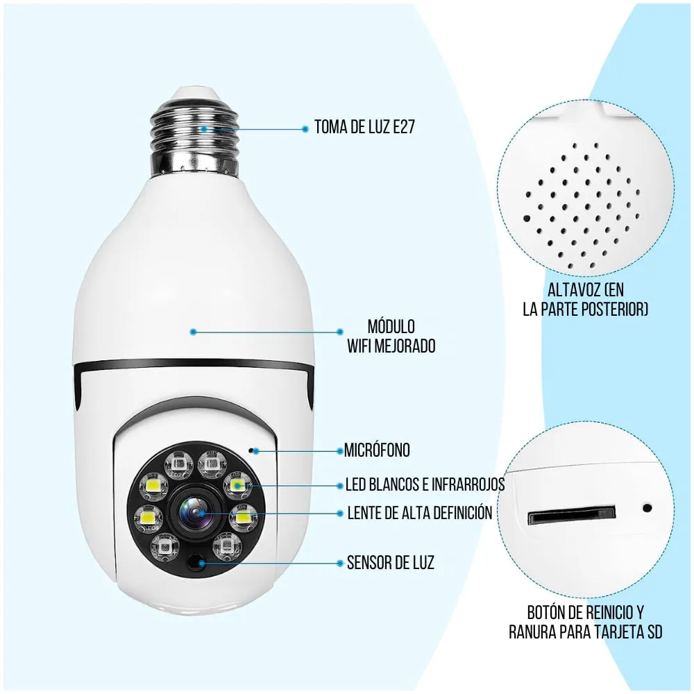 Esta cámara tipo bombilla con conexión WiFi es una solución moderna y eficiente para proteger tus espacios. Su diseño discreto, fácil instalación y acceso desde tu celular hacen que sea ideal para hogares, oficinas o negocios.